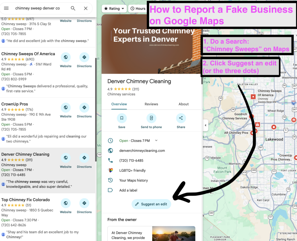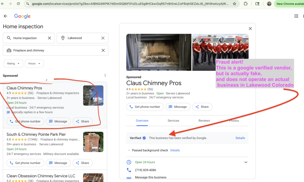 Bad actors have now hijacked Google Maps and local search. Most chimney companies rely on this platform for new customers. This makes the problem even more dangerous.