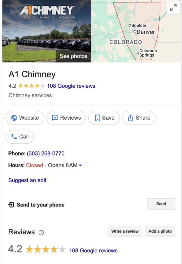 These businesses frequently rank high in Denver chimney searches. They have thin, recent-looking websites. They use generic content and cheap domains.